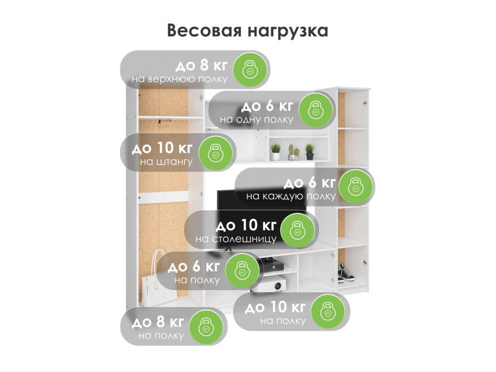 Мебель весом до 10 кг или длиной не более 180 см полки, зеркала, детские матрасы |
