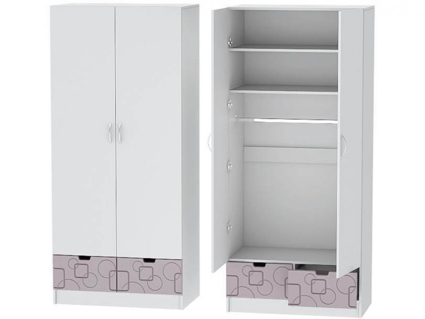 Детский Шкаф 2-х створчатый Бриз МДФ, Белый/Ирис (Квадрат) арт. 10464373