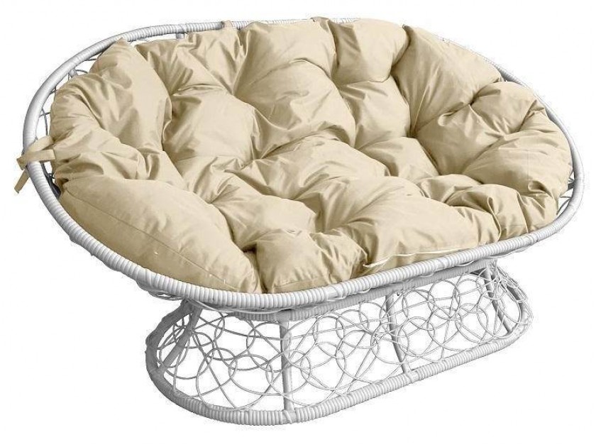 Диван МАМАСАН с ротангом белое, бежевая подушка арт. 10433123