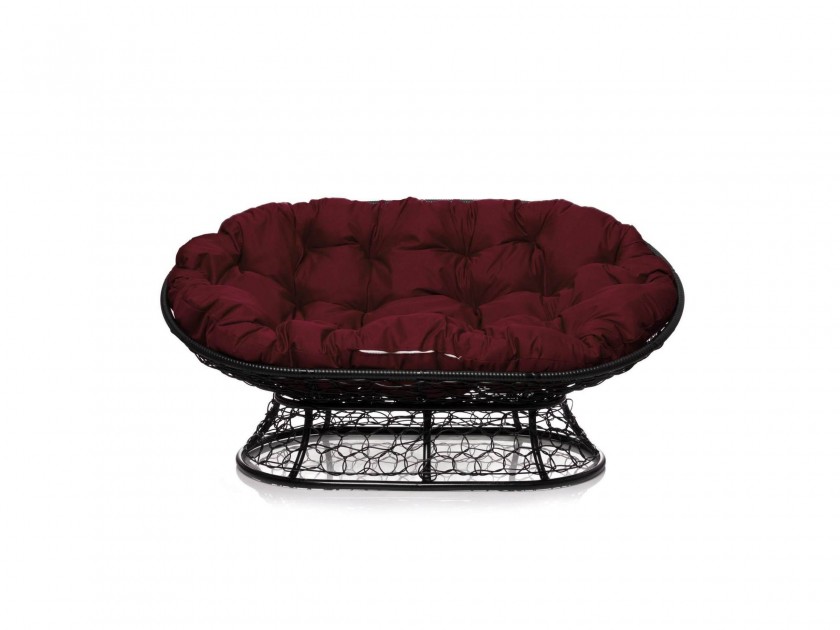 Диван МАМАСАН с ротангом чёрное, бордовая подушка арт. 10433109