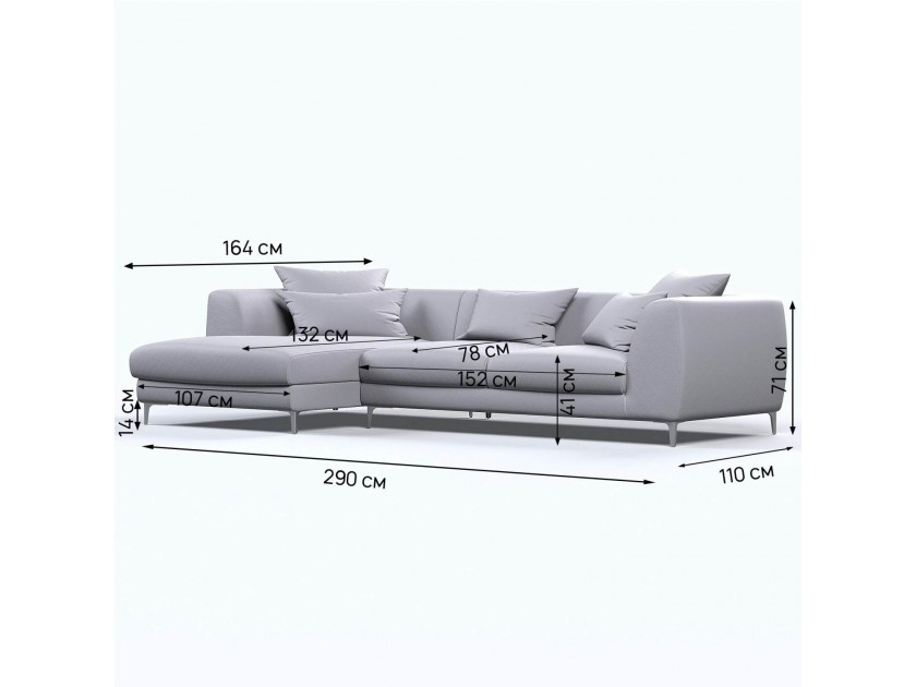 Диван угловой левый "Elegant" серый / велюр арт. 10375173