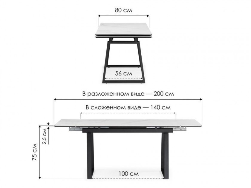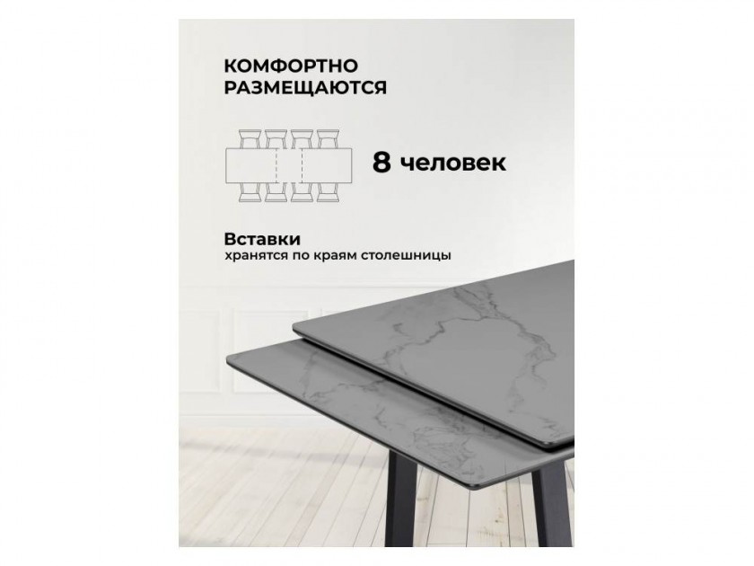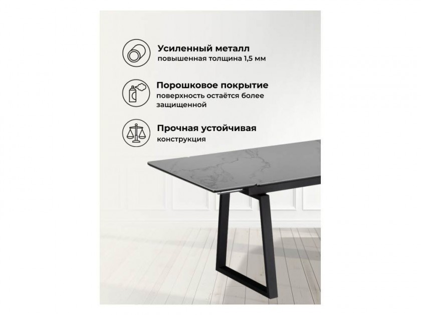 Джек 140(200)х80 серый мрамор larka grey / черный Керамический стол арт. 10469674