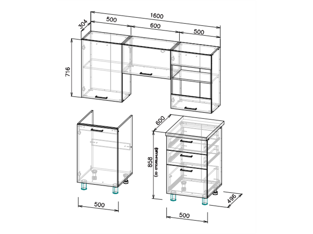 установка бытовой техники и сантехники, изготовление отверстий, выпилы и другие конструктивные корректировки, производимые на месте сборки, оплачиваются отдельно согласно прайс-листу.