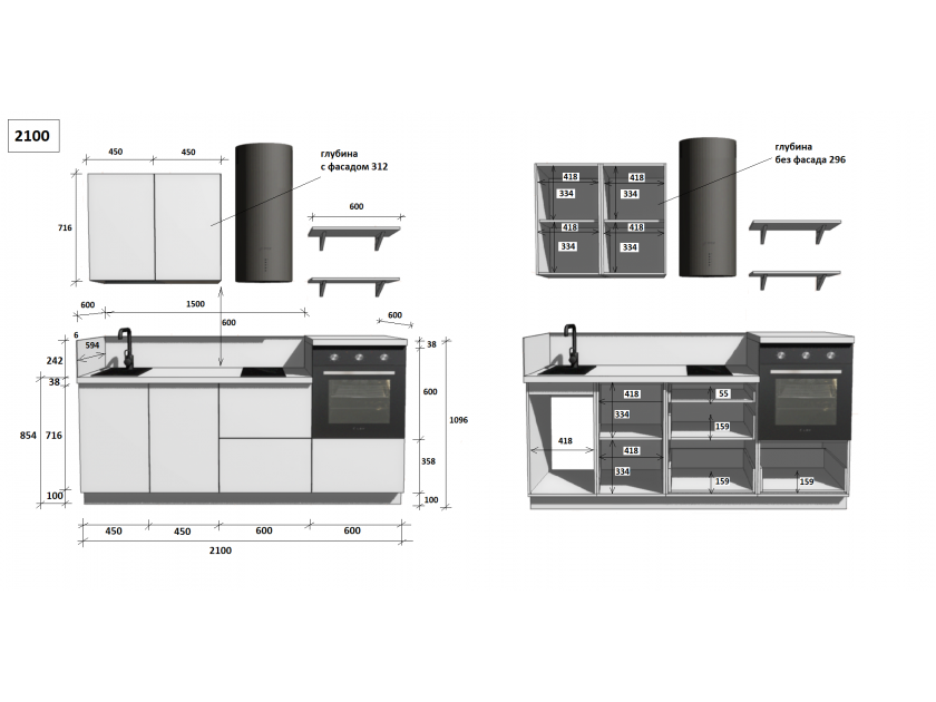 установка бытовой техники и сантехники, изготовление отверстий, выпилы и другие конструктивные корректировки, производимые на месте сборки, оплачиваются отдельно согласно прайс-листу.