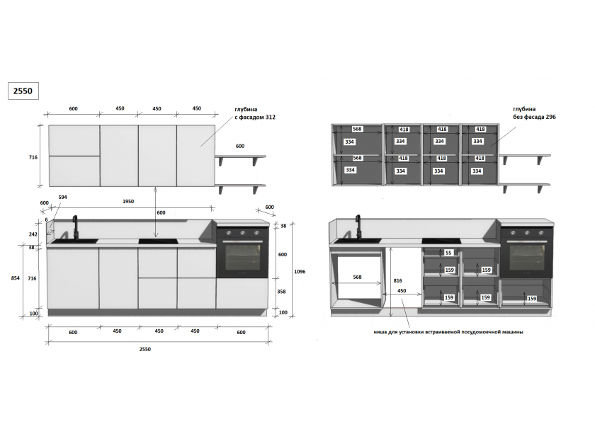установка бытовой техники и сантехники, изготовление отверстий, выпилы и другие конструктивные корректировки, производимые на месте сборки, оплачиваются отдельно согласно прайс-листу.