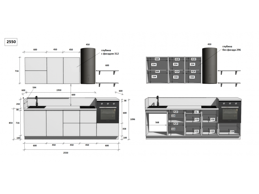 установка бытовой техники и сантехники, изготовление отверстий, выпилы и другие конструктивные корректировки, производимые на месте сборки, оплачиваются отдельно согласно прайс-листу.