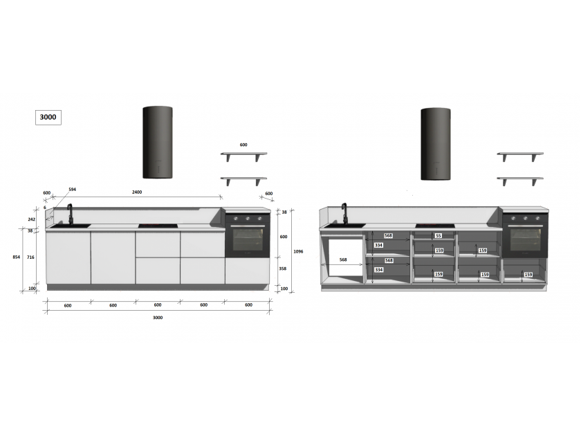 установка бытовой техники и сантехники, изготовление отверстий, выпилы и другие конструктивные корректировки, производимые на месте сборки, оплачиваются отдельно согласно прайс-листу.