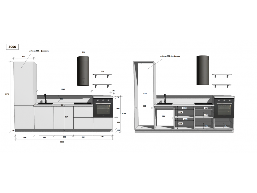 установка бытовой техники и сантехники, изготовление отверстий, выпилы и другие конструктивные корректировки, производимые на месте сборки, оплачиваются отдельно согласно прайс-листу.