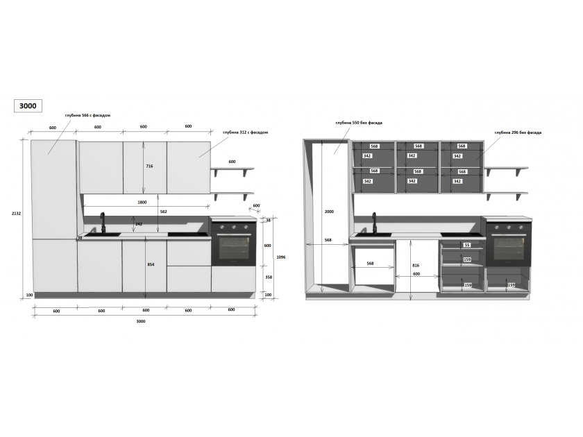 установка бытовой техники и сантехники, изготовление отверстий, выпилы и другие конструктивные корректировки, производимые на месте сборки, оплачиваются отдельно согласно прайс-листу.