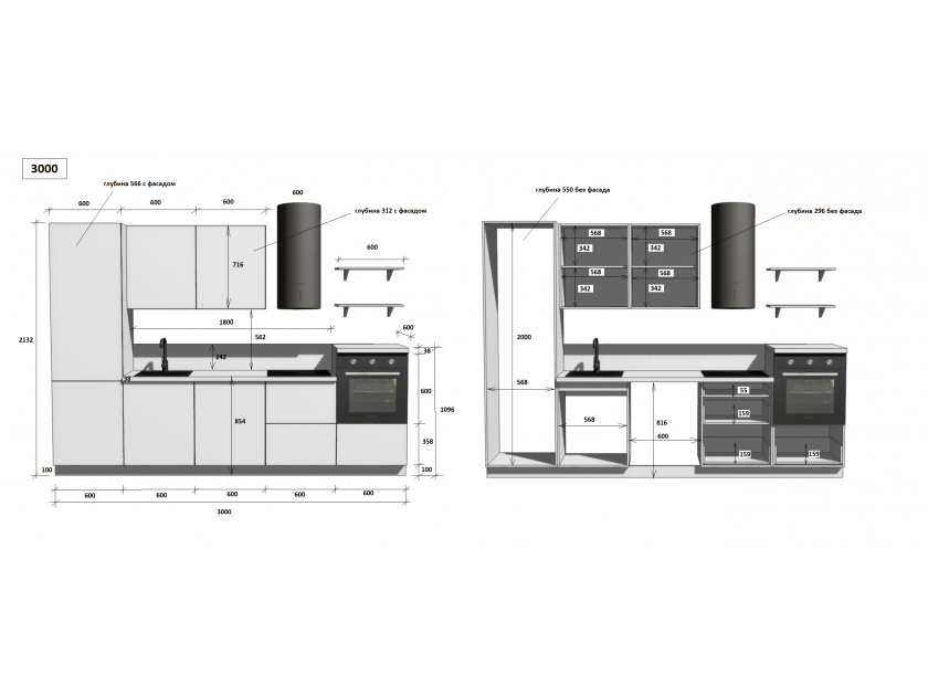 установка бытовой техники и сантехники, изготовление отверстий, выпилы и другие конструктивные корректировки, производимые на месте сборки, оплачиваются отдельно согласно прайс-листу.