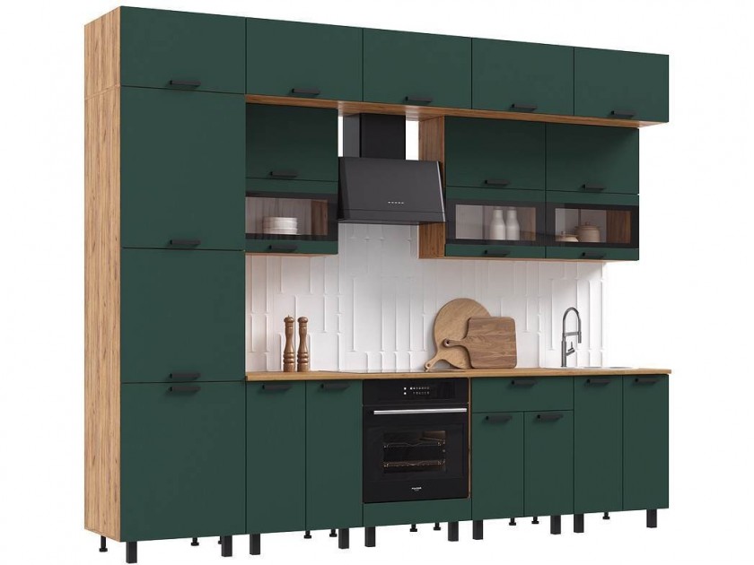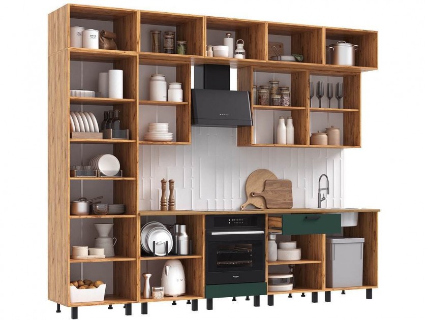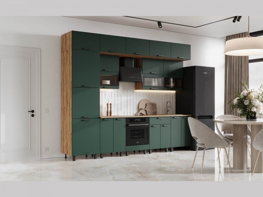 Кухня Техно 3,0/1080м Компоновка №2, Крафт золотой/Браш мени грин арт. 10473351