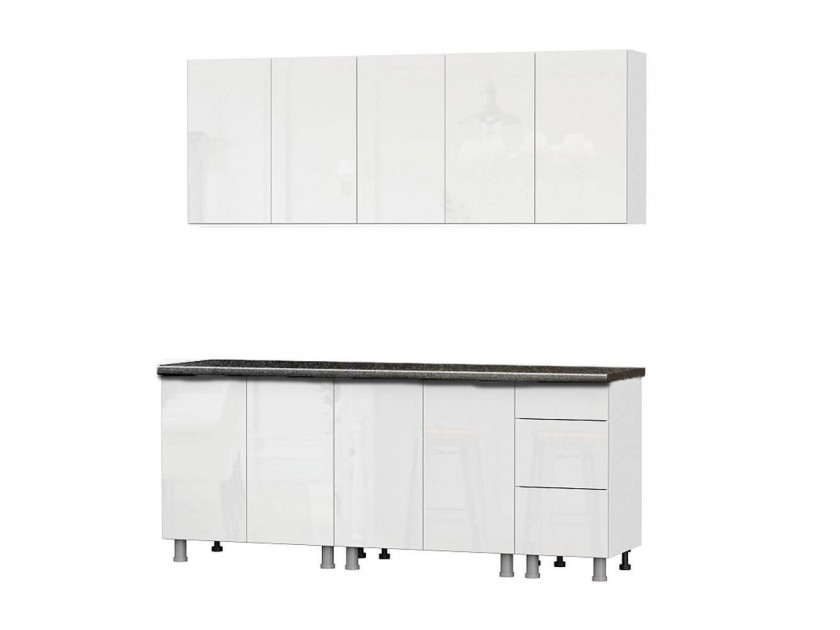 Кухонный гарнитур Модерн New (2,0м) (со столешницей 26 мм) Белый/Белый глянец/Черный арт. 10451850