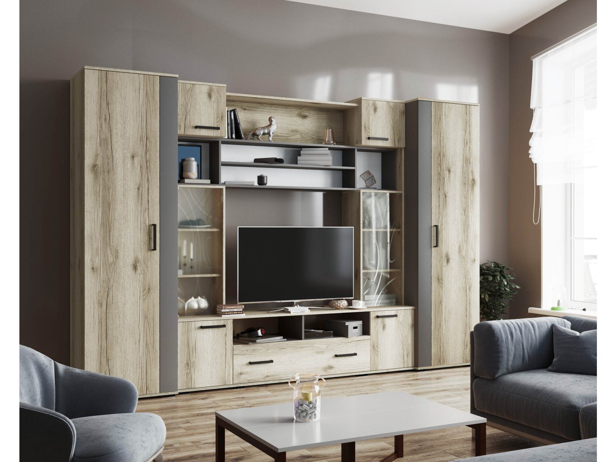 Модульная гостиная Оскар-18, Дуб делано/Графит арт. 10466747