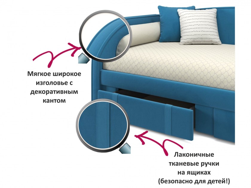 Мягкая кровать Elda 900 синяя с ортопедическим основанием и матрасом АСТРА арт. 10205078