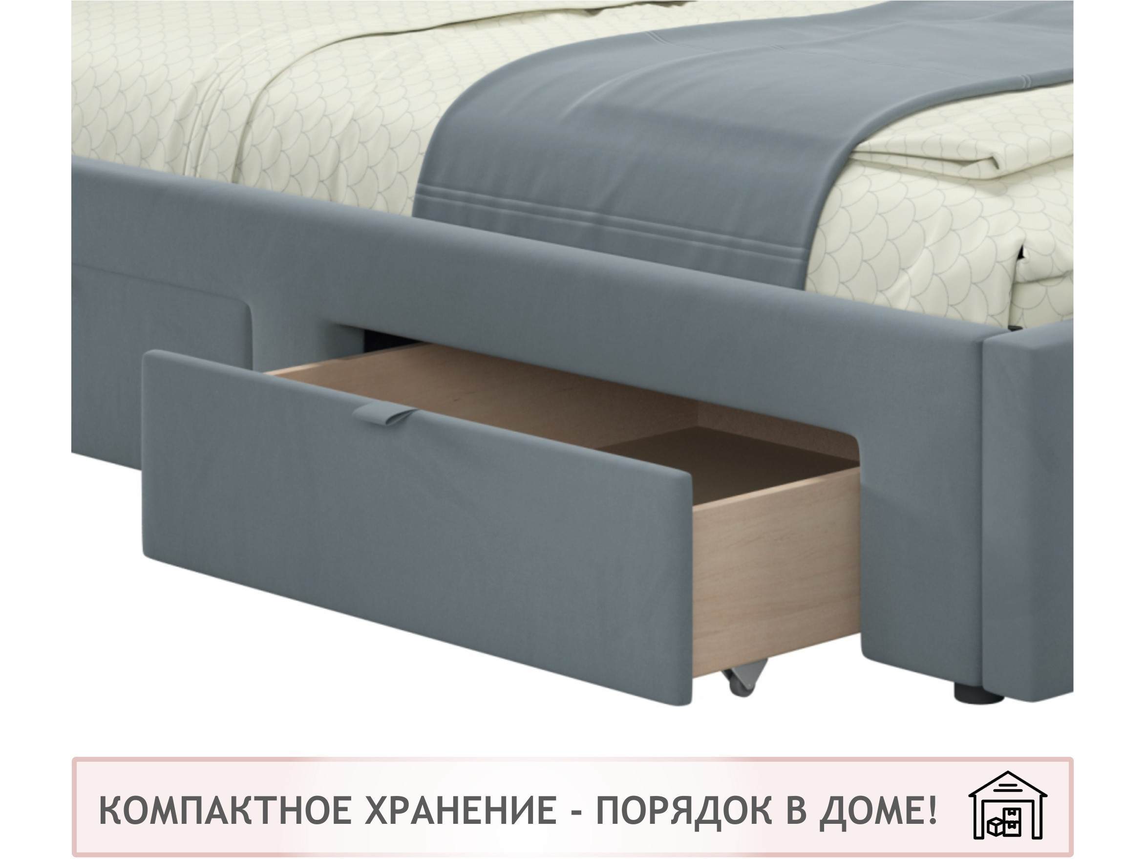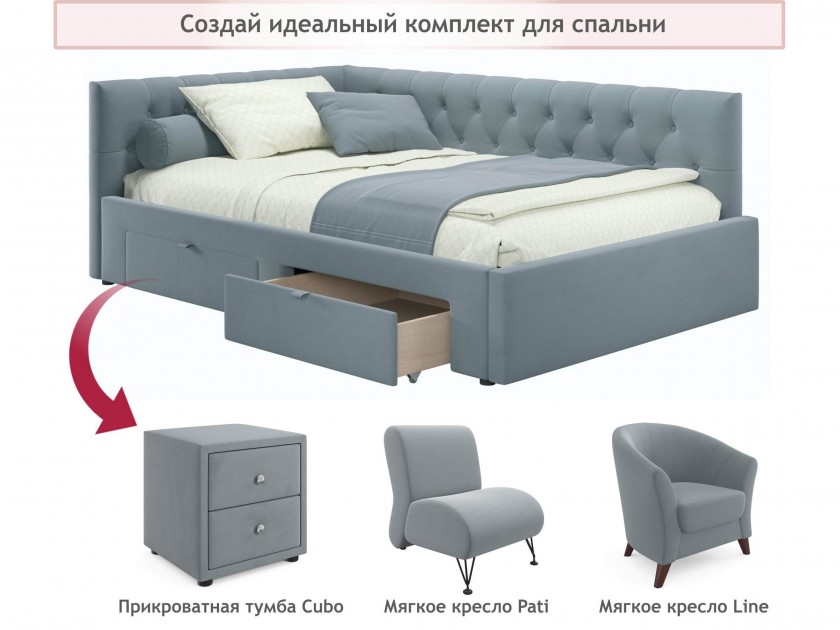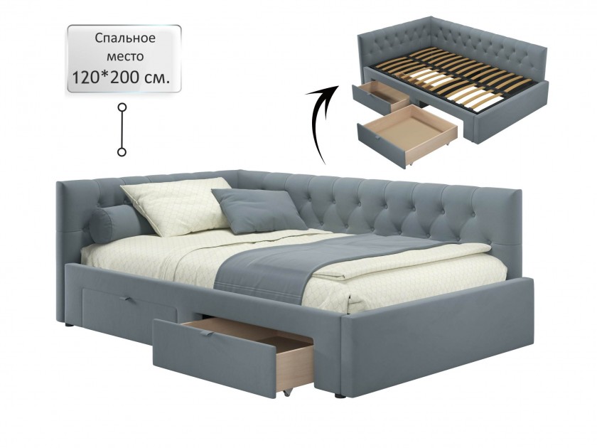 Мягкая кровать-тахта Afelia 1200 серая с ящиками арт. 10395416