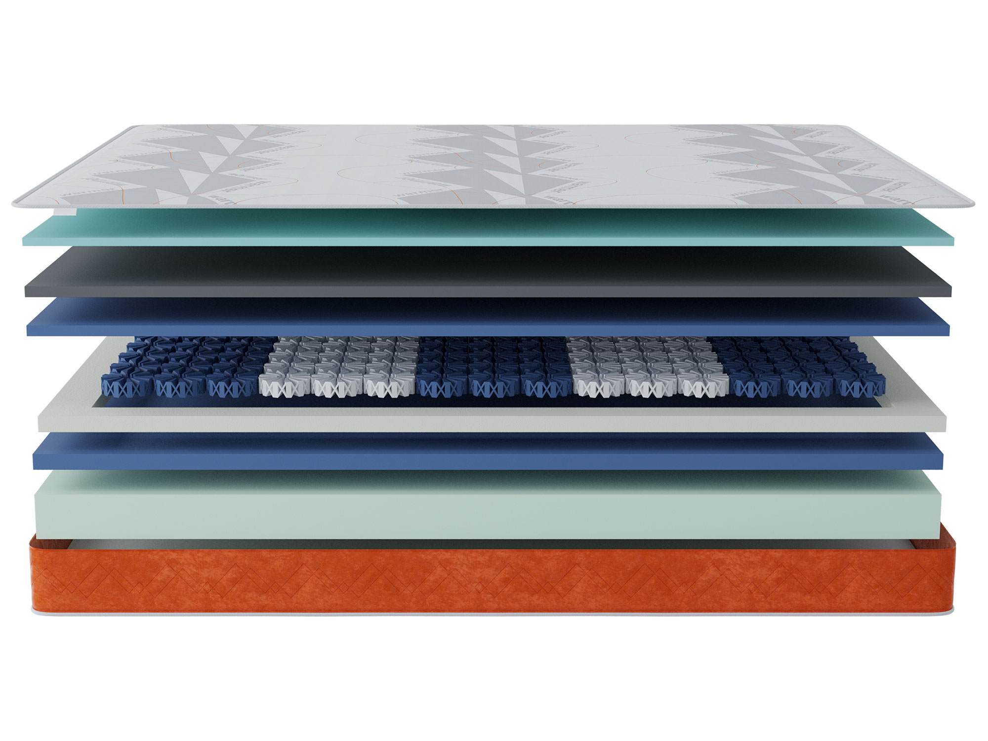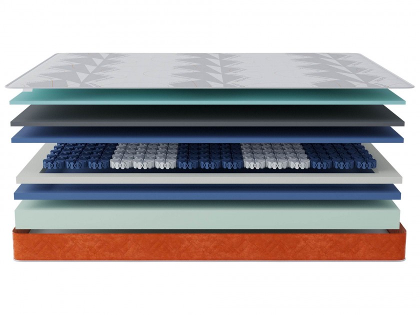 Пена мемори с угольной пропиткой 2 см / Пена средней жесткости 2 см / Пружины octaspring 3 см / Пена высокой жесткости 3 см / Пена средней жесткости 10 см / усиление периметра
