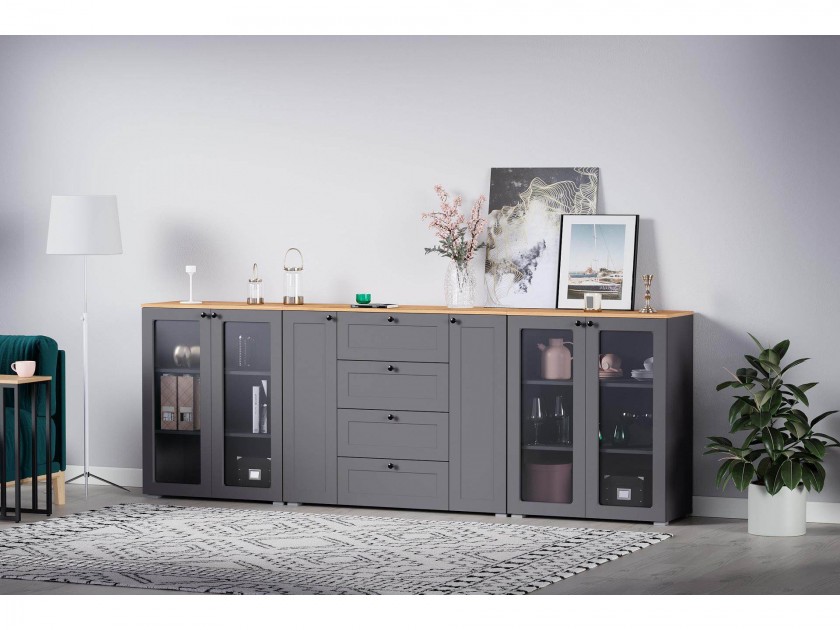 Остин Шкаф-витрина 16.394.01 графит/дуб золотой арт. 10466092