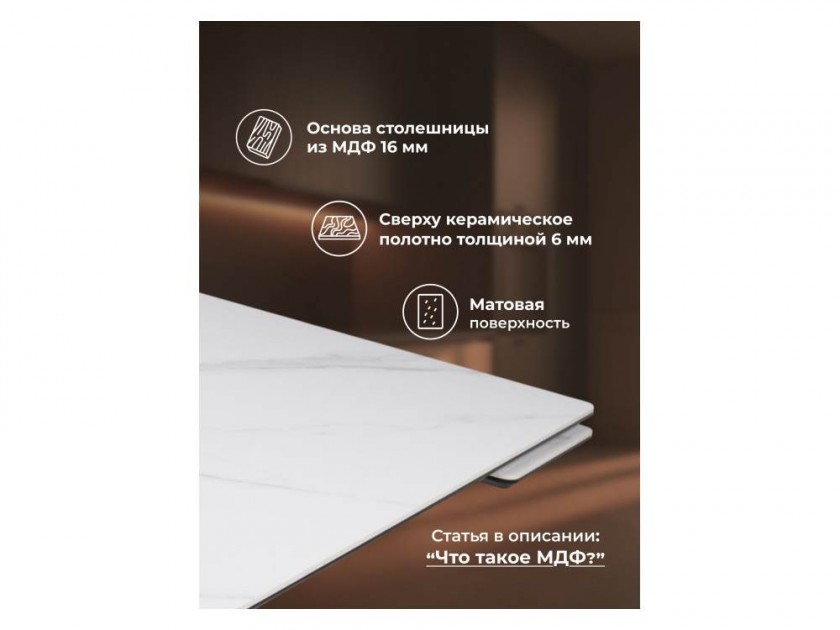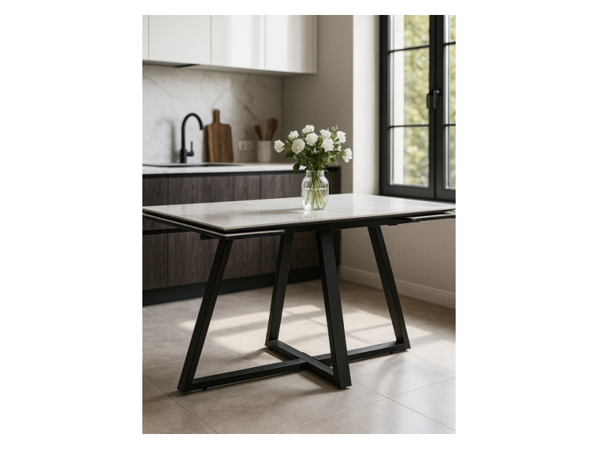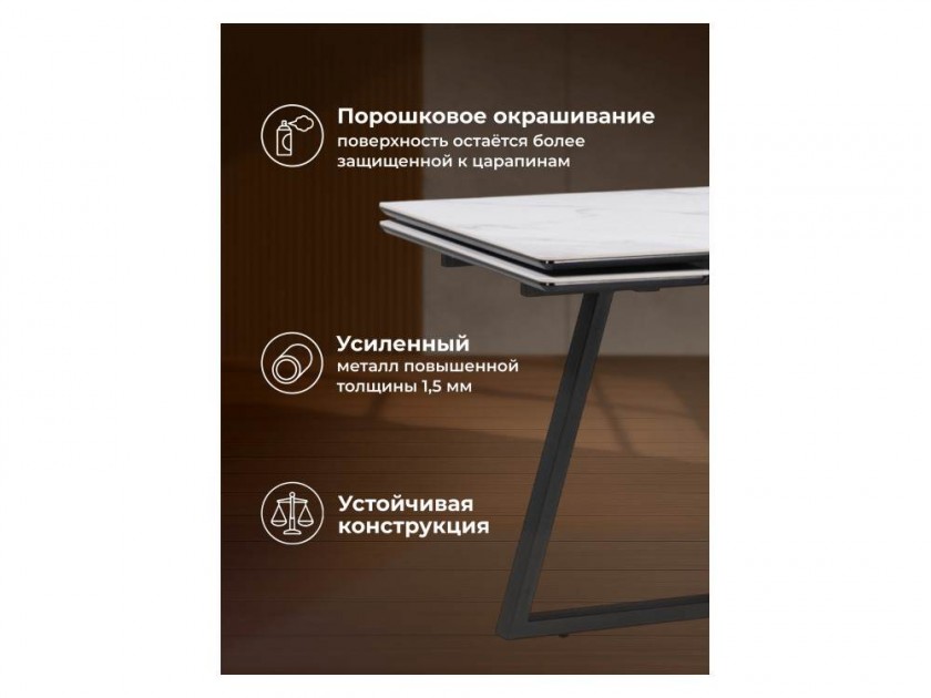 Памелла 140(200)х80х75 белый мрамор snow white / черный Керамический стол арт. 10468207