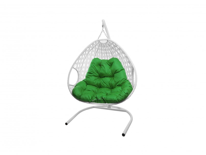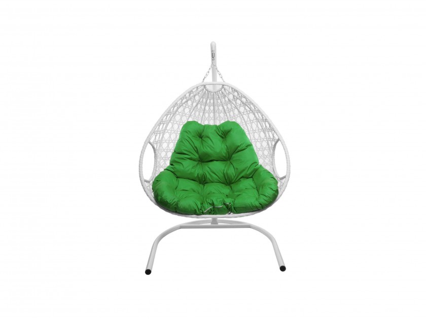 Подвесное кресло ДЛЯ ДВОИХ ЛЮКС с ротангом белое, зелёная подушка арт. 10444668