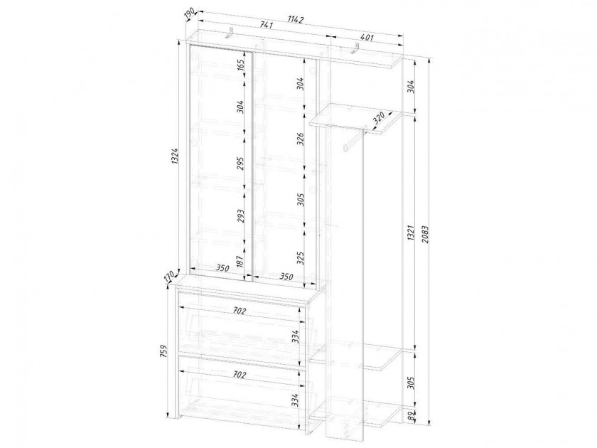| 114 x 208 x 36 см |