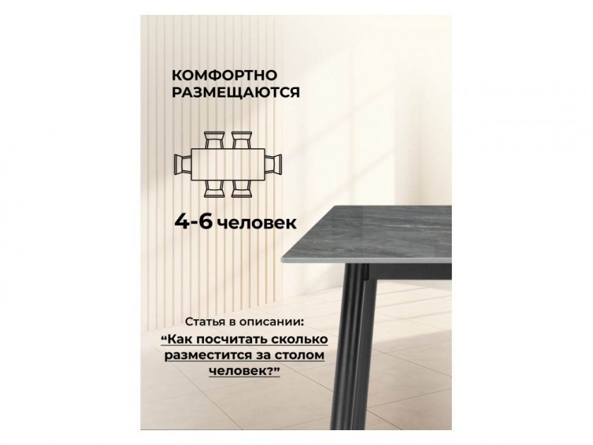 Rion 120 серый мрамор / черный Керамический стол арт. 10445093