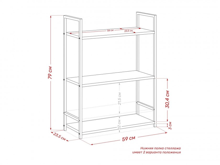 Стеллаж Leset Стилвуд 23 широкий, 3 полки арт. 10482227