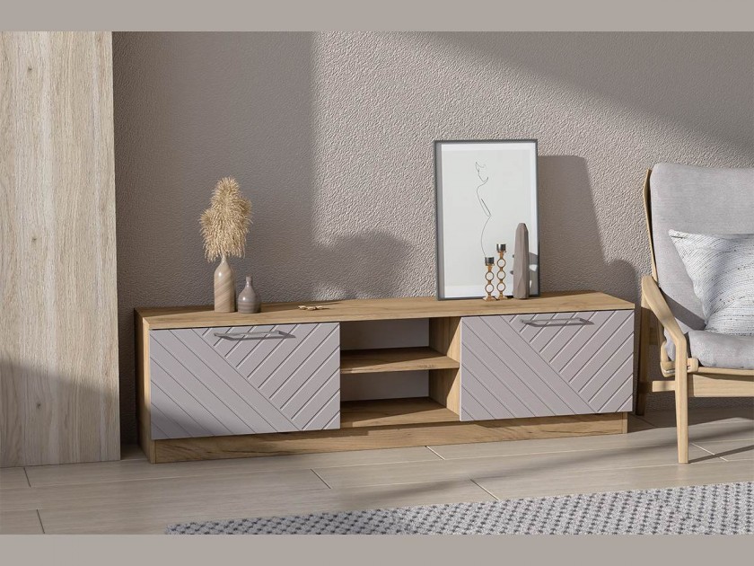 Тумба для ТВ-техники напольная Иннэс-7, Крафт золотой/Грэй софт арт. 10483596