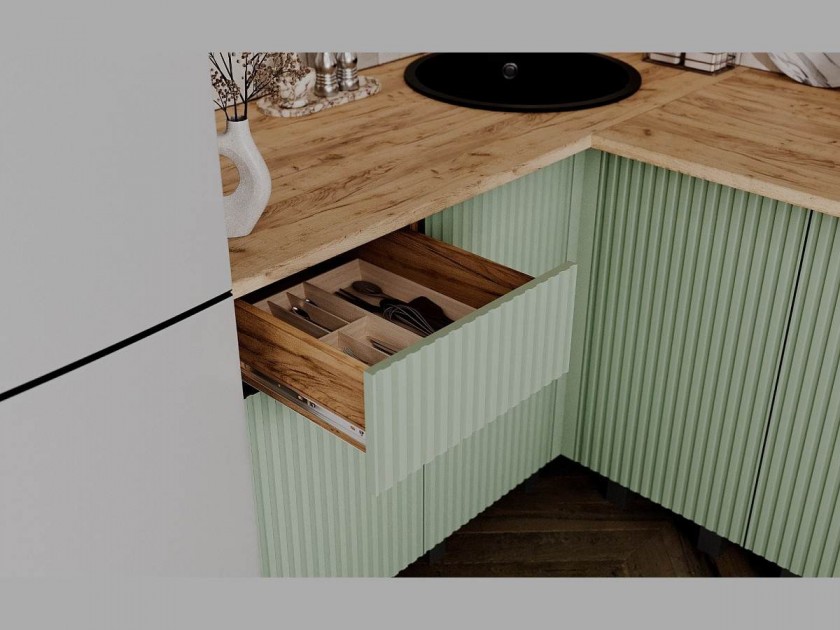 Угловая кухня Оливия NEW 1,4х2,4м, Крафт золотой/Олива софт арт. 10473354